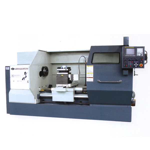 江蘇齊航數控機床有限責任公司產的CK系列數控車床采用FANUC、SIEMENS或廣數數控系統,具有可編程程序控制器(PC)和CRT顯示器,直線和圓弧插補。縱橫向進給采用交流伺服電機,脈沖編碼器反饋,床身導軌600mm,整體床身導軌采用高強度鑄鐵超音頻淬火后精密磨削。床鞍導軌貼塑,摩擦系數小。主軸可采用變頻無級調速,采用三支撐主軸結構,剛性好。切削范圍廣,可加工外圓、內孔。端面、割槽、錐面、倒角、圓錐或圓柱螺紋及圓弧曲面。